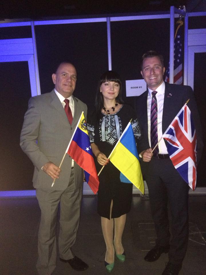 В этот же день состоялась церемония выноса флагов стран-участниц. Нашу страну представляла очаровательная Аня Коваль, которая своей улыбкой сразила переполненный зал наповал (многие делегаты выходили в национальной одежде, и вышиванка Ани очень органично и красиво смотрелась на этой выдающейся церемонии).