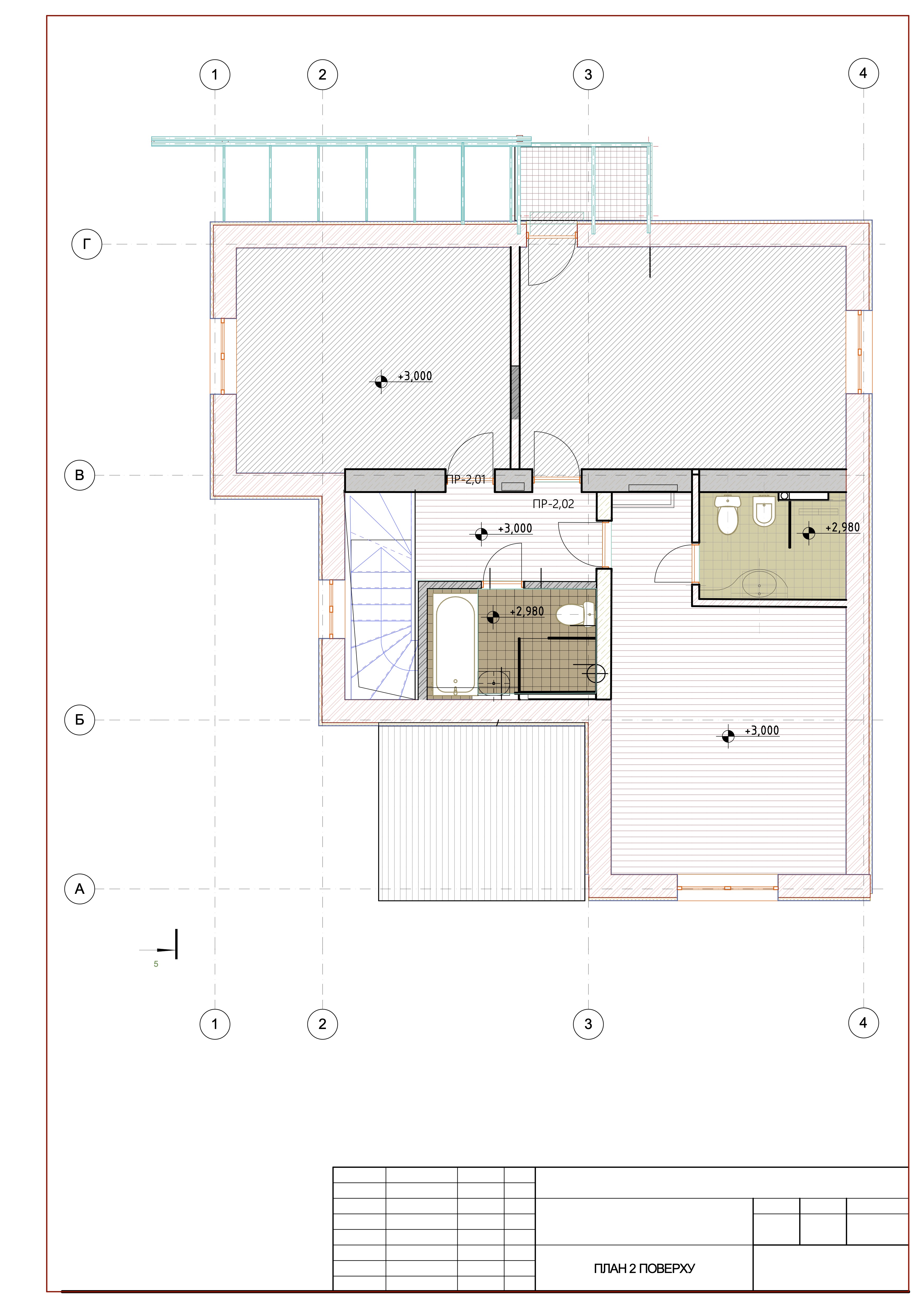 2-й поверх: три кімнати вільного призначення, два санвузли та балкон;