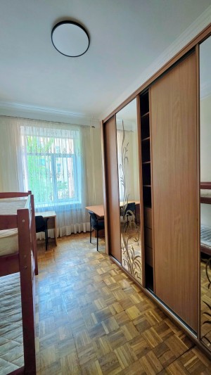 Саксаганского,41В. дом 1917 года (реконструкция дома 1967г., перекрытия ж/б) находится в тихом зеленом дворе, чистое аккуратное просторное парадное, лифта нет, въезд через шлагбаум, детская площадка. Квартира 2/4 эт. 75 м2 в хорошем жилом состоянии: Стеклопакеты, паркет, большой с/у, Светлая просторная Кухня-гостиная, 2 спальни, гардероб. Н-3,70 м.