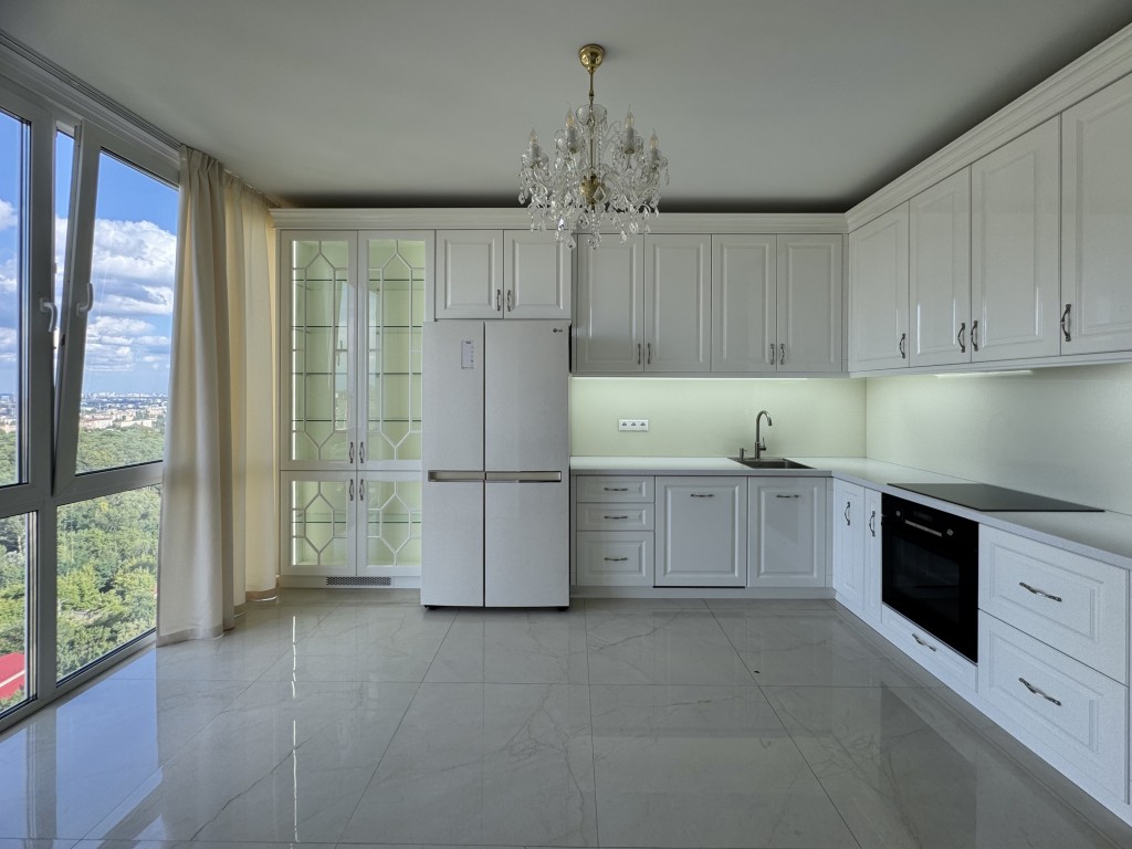 • Повністю облаштована вбудована кухня: холодильник, плита, витяжка, посудомийна машина.