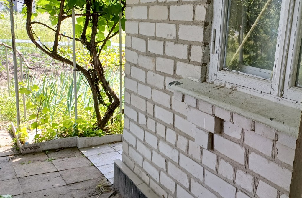 Цегляний будинок, має два поверхи, дві кімнати, кухня, віранда, гараж для автомобіля, грубка на дровах для для опалення будинку, залишаються всі наявні меблі, холодильник, газова плита з балоном, до будинку підключено електропостачання.