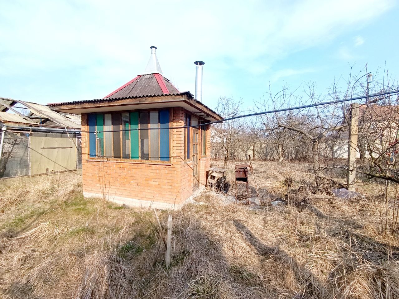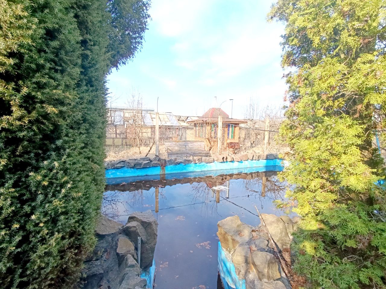 На ділянці є басейн, побудована не велика сауна, альтанка і теплиця. Стежки з тротуарної плитки і бетону. Сад з фруктових плодовитих дерев.