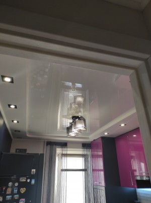 У ванні та на кухні – натяжні стелі.