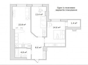 2 кімн., площа 55/-/14, поверх 5/12