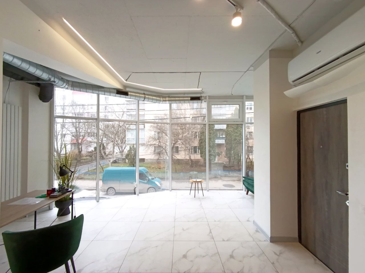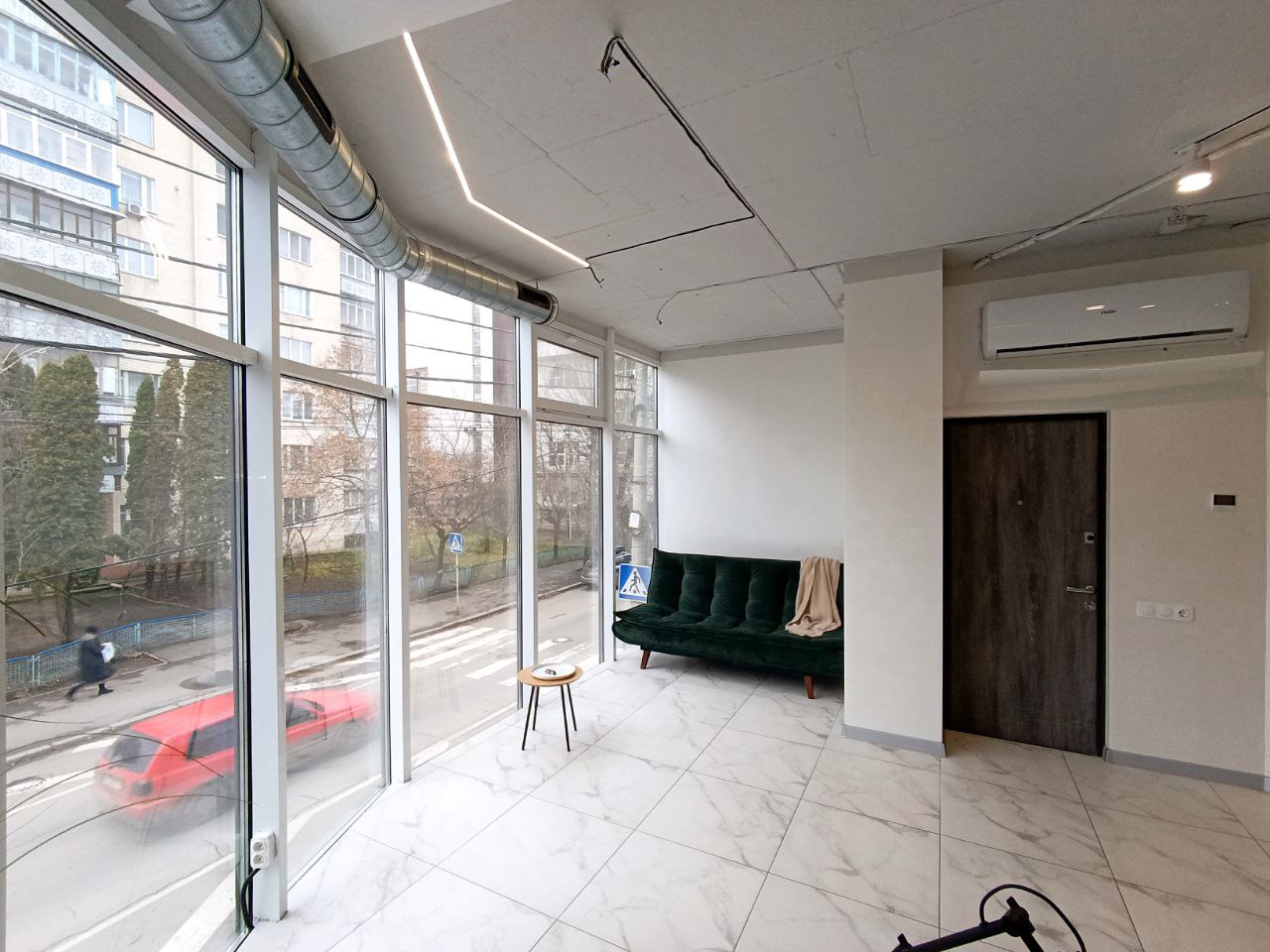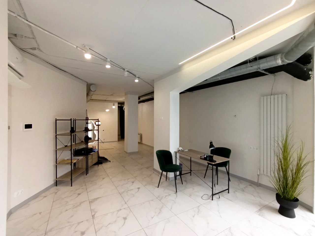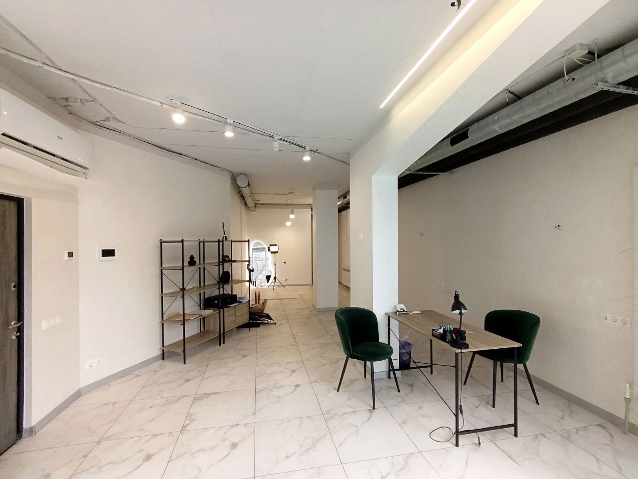Є кондиціонер (опалення кондиціонером чи централізоване), в приміщення є вода (тепла вода бойлер), можна зробити туалет. Зроблена кухня. Сучасний ремонт (все як на фото). Доступ 24/7, охоронна сигналізація.