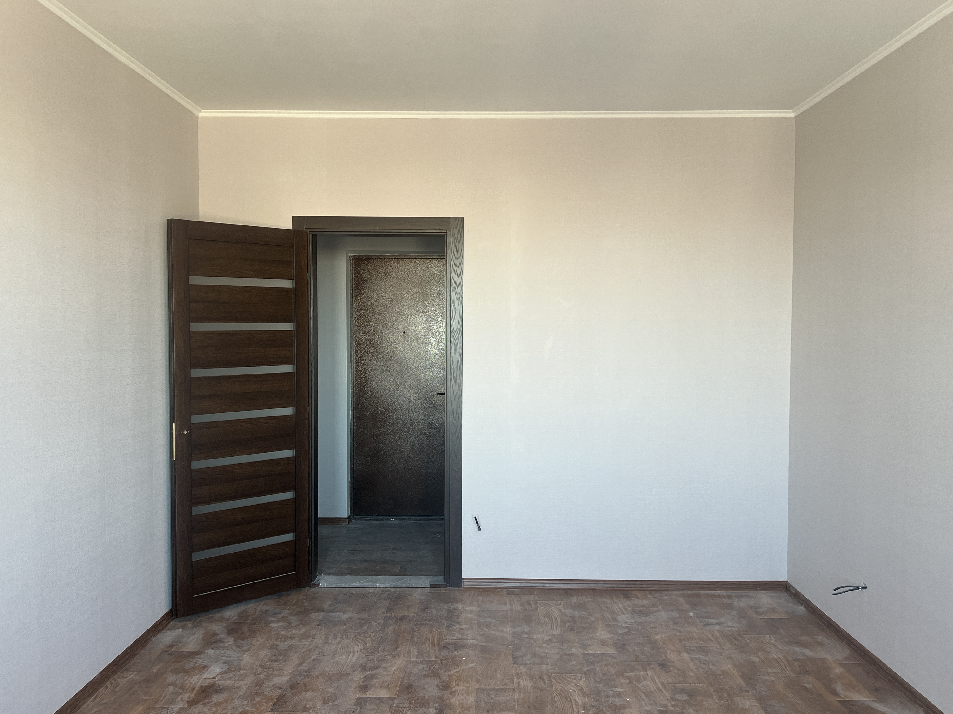 Будівельне оздоблення: - Двокамерні металопластикові вікна REHAU - Міжкімнатні двері з фурнітурою - Лінолеум, шпалери, плінтуси - Радіатори опалення з регуляторами - Повний комплект сантехніки у санвузлі - Централізоване гаряче водопостачання - Лічильники води, електроенергії та тепла - Металеві вхідні двері