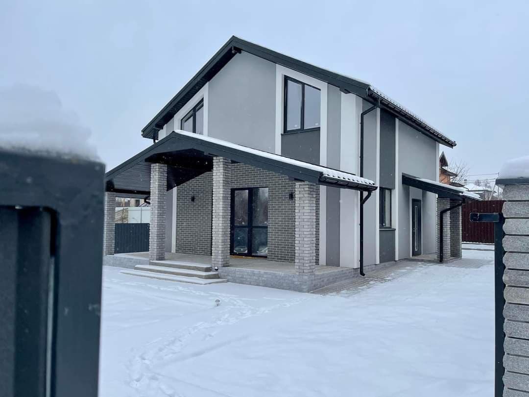 Продаж двоповерхового будинку в м.Гостомель, вул.Приозерна 62 Загальна площа: 110/45/31 м.кв Земельна ділянка: 5 соток кухня-студіо з панорманими вікнами, великою терасою 25м.кв. та з виходом у подвір’я з видом на ліс і парк, 4 кімнати, 2 с/в