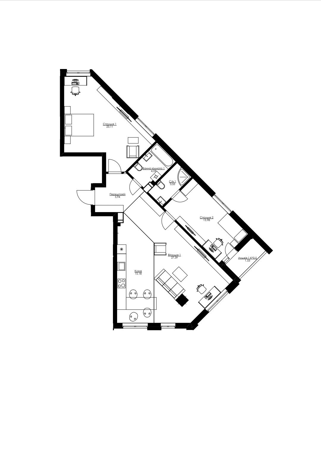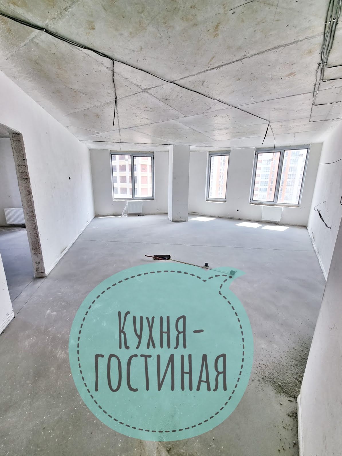 Общий метраж– 101.4 кв.м. 2 раздельные комнаты и просторная кухня-гостиная, 2 сан.узла, 1 балкон. Видовой 13-й этаж. Квартира – после строителей. Но уже сделана стяжка на полу и стенах, електро-разводка!! Уже можно заходить на ремонт. Установлены счетчики на тепло, воду, электричество.
