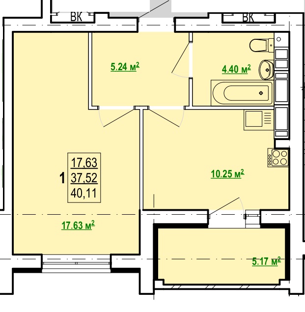 Загальна площа: 40 кв.м