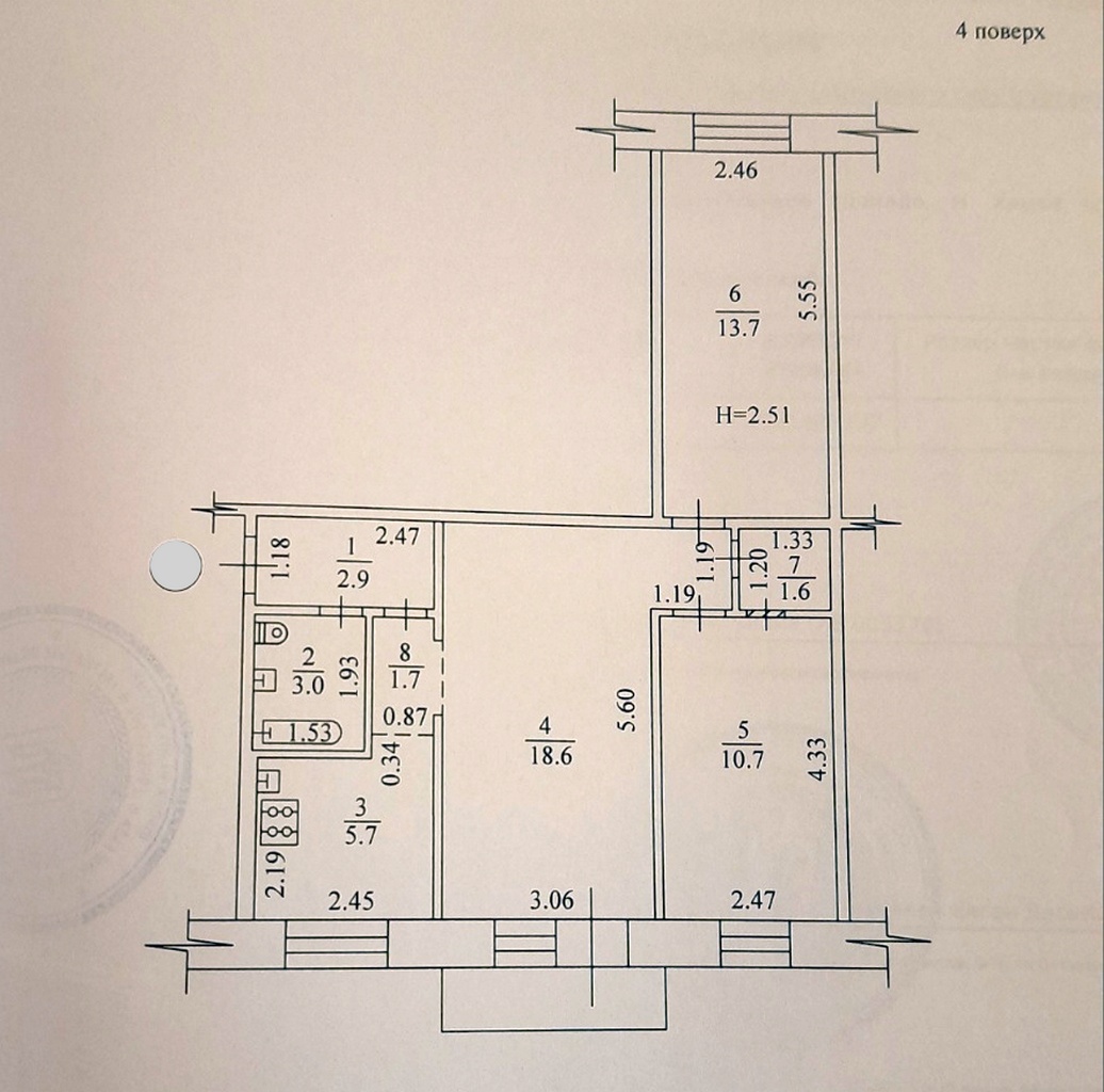 Квартира знаходиться на 8 поверсі 9-поверхового будинку.