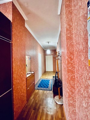 Загальна площа - 87 кв.м: простора кухня-вітальян, дві ізольовані кімнати, впорядкований балкон, два санвузли, передпокій.