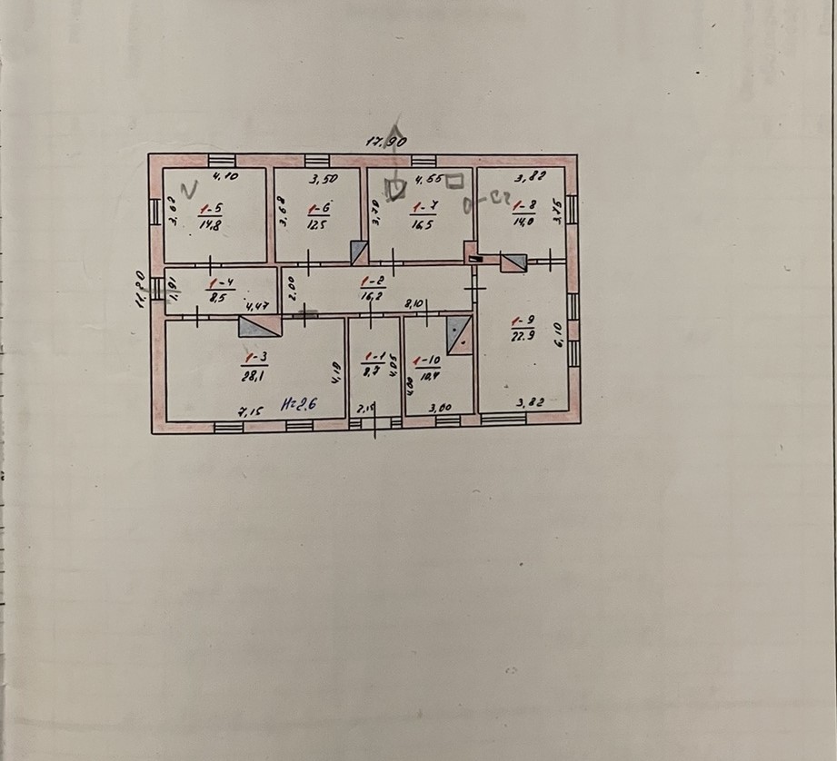 Також приміщення 200м.кв., в жилому стані з комунікаціями, газовим опаленням та зручностями поділено на кімнати.