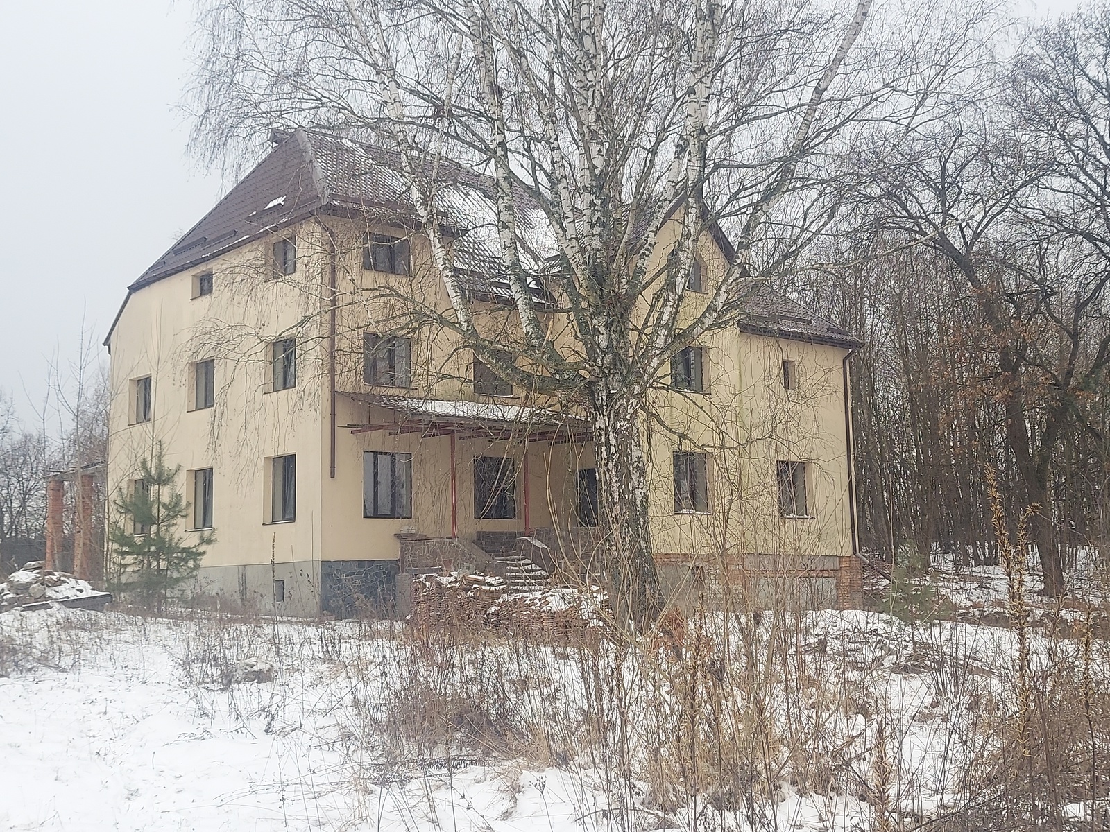 Капітальний будинок 545м.кв. + балкони і тераси. Підведено та виведено стояк газу біля будинку, скважина. 3 поверхи + цокольний поверх з гаражем, бетонні перекриття. Якісна побудова, частково поли, розводка світла, стіни гібсокартон, пошпакльовані. Якісні металопластикові вікна. Будинок переодично провітрюється (не сирий).