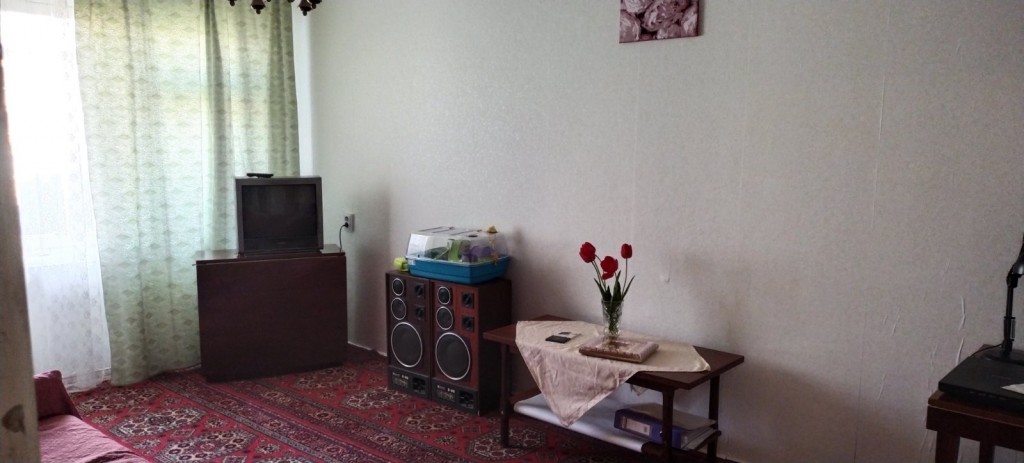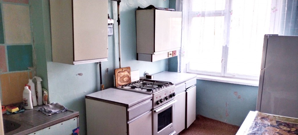 Квартира світла,не кутова,вікна квартири виходять на 2 стороніи північ- південьдуже тепла,повністю обставлена,є необхідні меблі- шафа,2 спальний розкладний диван в гарному стані,не продавлений,чистий,вбудовані кухонні меблі,стіл,стільці)