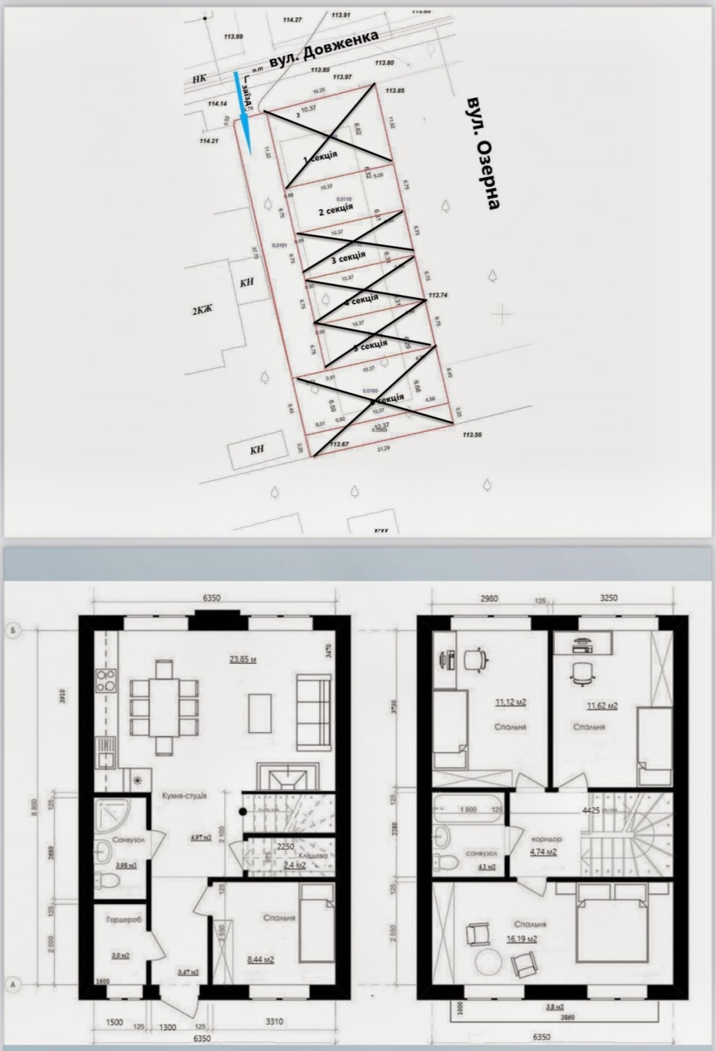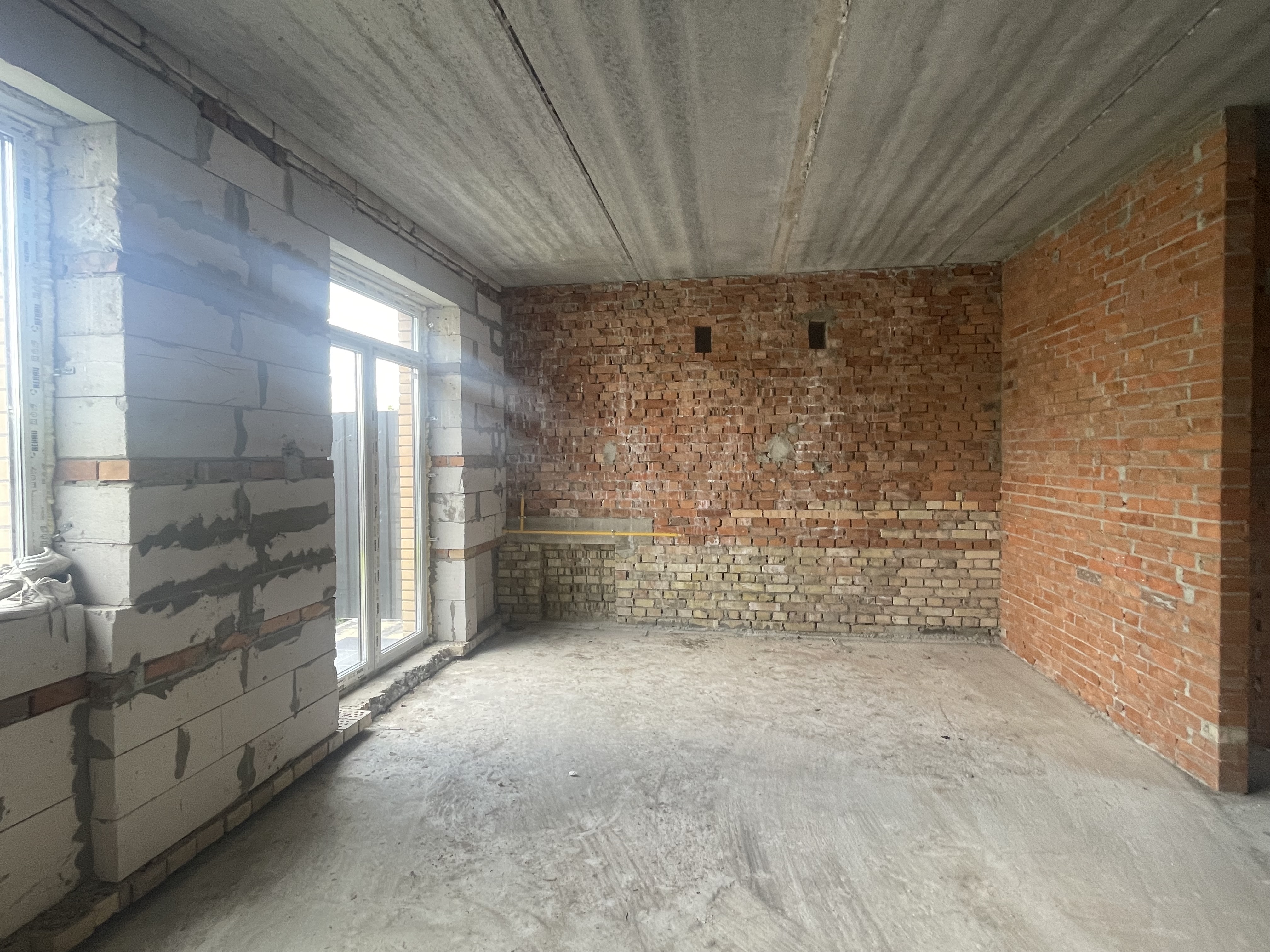 Як побудований будинок: • Зовнішні стіни – газобетонний блок 300 мм. • Утеплення зовнішніх стін – пінопласт 50 мм. • Облицювання зовнішніх стін – якісна клінкерна цегла. • Міжсекційні стіни – червона цегла, товщина 40 см • Міжкімнатні стіни – червона цегла. • Перекриття - заводські сертифікавані залізобетонні панелі, 1 та 2 поверх. • Дах - металокерамічня черепиця, утеплення мінватою. • Вікна – металопластикові, 2-х камерні, енергозберігаючі. • Вхідні двері – броньовані. • Фундамент – утеплений, облицювання цеглою. • Сходи – бетонні. Планування: • Площа – 105 кв.м. • 1 поверх – кухня-вітальня з можливістю встановлення каміну, кабінет, гостьовий санвузол, кладова. Бонус – погріб! • 2 поверх - 3 спальні , санвузол. • 3 поверх (мансарду) можна зробити повноцінним житловим поверхом, завдяки бетонному перектиттю. • З великої спальні – балкон, покритий терасною дошкою. • Підключені комунікації та оздоблення: • Електрика – центральна, ввід в будинок. • Каналізація – центральна, ввід в будинок. • Водопостачання – централізоване, ввід в будинок. • Опалення – індивідуальне газове, ввід в будинок. • Лічильники на газ, воду, електрику. • Можливе чистове оздоблення від забудовника.